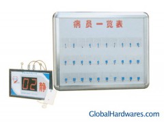 NO: TY-EI-109Structure and configuration: Computer chip control, two-way call, two-way talking, the extension phone can call the main phone, and vice versa. The call numbers are displayed according to the bed numbers, simultaneous with the large screen in the hallway. The extension bedside lamp indicates; The calling music prompts; With such functions as displaying the numbers of inpatients, the wards, the perpetual calendar, Sunday to Monday, time-ste and so on. Size: 65x45x6cm(Set) Trademark: tianya Model NO.: TY-EI-109 Productivity: 100000 piece/year Company: Zhejiang Tianya Machinery Manufacture Co., Ltd.