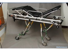 Hospital stretcherHeight Wheels Weight Position 1 14" (37 cm) Position 2 24" (62 cm) Position 3 30" (76 cm) Position 4 35" (89 cm) Position 5 38" (97 cm) Position 6 39" (100 cm) Position 7 13" (33 cm) Litter, Flat Foot 7" (18 cm) Litter, Knee Gatch 7" (18 cm) Diameter 6" (15 cm) Width 2" (5 cm) Weight 74 lbs. (33 kg) Clever, versatile design supports true one-person operation. Patented steer lock enables wheels either to swivel or to lock into straight-line position. Oversize wheels maximize mobility on all types of terrain Ergonomic lift-and-grip design with color-coded controls provides unprecedented ease of use. Safety release for loading mechanism helps eliminate accidental patient drops whe Width Articulation Flat Foot Backrest 0-75 ° Flat Foot Shock POS. NA Flat Foot Knee Gatch NA Knee Gatch Backrest 0-75 ° Knee Gatch Shock POS. +17 ° Knee Gatch Knee Gatch 30 ° Maximum Weight Capacity 500 lbs (228 kg)
