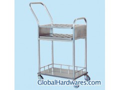 Specification: L600*W400*H800 Main Features: 1. The whole structure is made of stainless steel, firm, durable and beautiful. 2. Double-layer shelf and one underneath rack make more convenience for medicine delivery. 3. Noiseless castors create smooth and flexible movement. 4. Easy operation and functional.