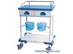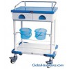 Medical trolley: 1) Suitable for sickroom nursing2) With imitation marble tabletop, easy to clean and corrosion resistant3) Two drawers: A) 100mm heightB) Inner dimensions: 220 x 360mm4) Two suspending rings (front) can rotated horizontally 110o5) Four polyurethane rotating foot wheels, two with brakes6) Overall dimensions: 650 x 430 x 905mmInner packing: Dimensions: 750 x 530 x 1005mm