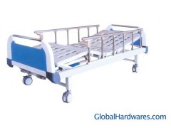 ABS double-crank manual hospital bed ABS head & foot board. Powder coated steel bed frame. Punching bed surface, Sixth-aluminium alloy guardrail. 5'casterFunction: Bach rest lift angel: 75degree Foot rest lift angle: 40 degree