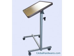 1. Light upward touch on patented spring-loaded locking handle allows table to elevate freely 2. Unique U-base design permits use with chairs 3. Attractive walnut wood-grained laminate top with flush-mounted T-molded edge designed to resist damage 4. Durable, heavy-gauge, chrome-plated welded tubular steel construction 5. Supports up to 50 pounds of evenly distributed weight when table is in lowest position Base: 15.5"W x 26"L Bracket: Column/base/support: 14/16/13 gauge Dimensions: Table top: . 75"H x 15"W x 30"L Height Adjustment: 29" - 45" Product Weight: 27 lb