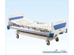 Size: 2140mm(L)*940mm(W)*540mm(H)Packing size: 2090*980*600mm(carton or wooden case)Main features: 1. Epoxy coated bed frame, with detachable flat tube headboards and stainless steel collapsiable siderails, 2. Two function, which can be operated by manual cranks, the details are as follows: (1)back rest: 0-70± 2degree (2)knee rest: 0-40± 2degree 3. Anti-bumper in four corners, with I. V. Rod locations4. Four dia-125mm castors, with central break system. Company: Hebei Pukang Medical Instruments Co.,Ltd.