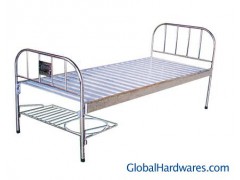 Stainless steel flat medical bedStainless steel head & foot board. Powder coated steel bed frame. Steel bar surface.