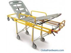 Back rest and lying part made with thermoplastic material reinforced to allow cardiac massage, easy to clean and to disinfect. Adjustable back rest 0deg; - 90deg; Moved by a gas piston that allows to fix the back rest safely in all positions. Trendelenburg position operated by a gas piston from 0deg to 20deg; . Side protections completely overturnable. Blocking device for the folded legs with a system that avoids the compression of the bar. Safety lever for the legs positioned near the unlocking device allowing thus the release operation for the loading, keeping the hands on the stretcher. Vertical legs protected by nylon wedges. Automatic centring device mounted on rotating wheels. This system automatically blocks the back wheels in the central position during the loading of the stretcher on the ambulance without having to turn the wheels manually. 4 wheels diam. 150, two fixed and with brakes and two rotating, one of which antistatic. Complete with belts and mattressTechnical features Length: 193cm Width: 56cm Height: 81cm Maximum loading height: 63cm Folded height: 22cm Weight: 39kg Load: 170kg