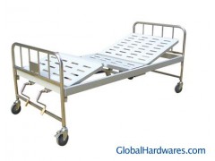 Stainless steel double crank manual hospital bed Stainless steel head & foot board. Powder coated steel bed frame. Punching bed surface. 5'casterFunction: Back rest lift angle: 75degree Foot rest lift angle: 40 degree