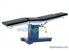 FN-JY. D Universal operation table can be use for general operation of thoracic-abdominal surgery, Ophthalmology Department, E. N. T. Department. Gynaecology Obstetrics Department and Urological Department. The feet-oil pump and mechanical transmission are applied in this product for the operation of other parts of the unit. The operation table can rotate for 360° And adjusted to "∧ "position. The operation table can take X ray and C-arms Image for whole position to achieve barrier-free function, Easy-control, Reliable Allocation. Compact Structure and Innovative Shape are the characteristics of operation table. Technical SpecificationsLength: 1900± 50mmWidth: 500± 20mmMaximum and minimum height of the platform: 740± 50mm1030± 50mm Asccending distance: 290± 50mmHorizontal rotary: 360° Front inclination: ≥ 25° Backward inclination: ≥ 15° Left inclination: ≥ 25° Right inclination: ≥ 25° Back board fold upward: ≥ 50° Back board fold downboard: ≥ 15° Head board Fold upward: ≥ 15° Head board Fold downward: ≥ 90° Leg board Fold downward: ≥ 90° Leg board Fold outside: ≥ 90° Waist up degree "∧ ": 230° Waist down degree"∨ ": 100° Table rated load capacity: 180Kg