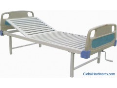 THR-CHB-10 hospital single-crank manual bed; 1)PE bed head/end, 2)bed surface and frame is cold-rolled steel with spray plastic 3)without wheels.