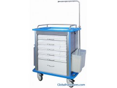 1. Material: Aluminum alloy, ABS plastic and stainless steel 2. Overall size: 850*520*1010mm3. 6 layers of drawers, can be pulled out from both sides, self-lock when closed; Total 50 medicine boxes on all drawers, on front of each medicine box, case-history cards sticked4. Accessories: 2 PCS of garbage bins, 1 PC of transparent file box, 1PC of silding side board, and 1set of five-hooks hanging device