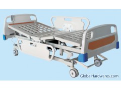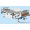 5 function electric hospital bed Secification: L2270*W930*H500-700mm Main Features: 1. High quality ABS engineering plastic detachable head/foot board, washable, stainless. 2. One-step punch forming bed platform by cold rolled steel plate, bed platform welded by mild profile steel, baked epoxy powder coating finishing after the exact processings of scale removal by phosphoric acid, water wash, phospotization, anti-aging and anti-rust. 3. Safe, reliable and tuck-away ABS guard rails with easy operation and complying with international stardand. 4. Electric system adopts LINAK safe voltage motor from Denmark with power storage function, which can create UPS. (option)5. Trendelenburg&reverse Trendelenburg: 12° ± 2° . 6. The height adjustable: 200± 20mm. 7. Maximum angle of back rest: 20° ± 5° . 8. Maximum angle of leg rest: 65° ± 5° . 9. Stable and noiseless central brake castors with central controlling treadle. 10. With location for I. V. Pole on the bed sides. 11. CPR function(option).