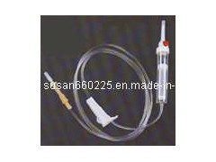 Code No.: Tranfusion-1Consist of: 1 Piercing device-Made of medical grade white ABS, with or without air Inlet, 3 or 4 holes size according to ISO1135-4 standard. 2. Protective cap-Made of PP or PE. 3. Drip chamber-Made of soft PVC, size according to ISO1135-4 Standards. 4. Fluid filter-Cylinder support is made of ABS or PE, nylon net. Mesh size: 15 micron. 5. Air inlet-Cap is made of red, white, or blue PP. 6. Water-repellent filter-PP support, hydrophobic filtering paper, made of Acrylic resin and nylon. 7. Flow regulator-Made of PP or ABS, normal shape, small size or horned shape, large size. 8. Injection site-Latex cone, rubber cone, synthetic rubber cone, Y Site-made of hard transparent PVC+injection site made of natural or Synthetic rubber. 9. Soft tubing-Made of soft medical grade PVC, 3x4mm, 150cm In length, or adjust according to requirements. 10. Terminal connector: Made of PE, PVC, luer lock or luer slip. 11. Components assembly: By gluing with solvent cyclohexanone. Specification: They are suited to hard containers and soft bags( without Air inlet type) Sterile, non-toxic, pyrogen free, sterilized by EOG. Certificate: CE, ISO9002, EN46002