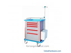1. 5 drawers: 2 small (70mm in height), 2 medium (140mm in height), and 1large (210mm in height). 2. Standard accessories: 2 garbage bins, 1 transparent file box, 1 silding side board, 1 metal salver, and 1 I V PoleOEM is available.
