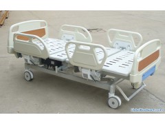 This 3 function electric hospital bed is produced by advanced technician and material. The head/foot board and siderail is made of ABS material. The bed surface also can be made of ABS material or steel. Dimension: 2050x950x510/710mm(adjustable height)Function: Angle of back section: 0 ~ 75° (± 5° )Angle of leg section: 0 ~ 40° (± 5° )Whole body Adjustable height: 500mm ~ 700mm)Configuration & feature: 1. Be able to bear 250kg weight2. Back rest and knee break simultaneously3. Central locking wheels.