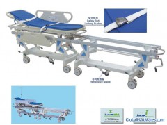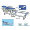 Size: 3650*640*640/970mm;Height adjustable:330mm; back rest upward:0-75 degree;The main construction of the cart is shaped by once die-casting of fine aluminum alloy. The guideways for linking two small separate carts are made of quality aluminum alloy of high strength. Two separate small carts can be raised and lowered for adjustment. when the two small carts are adjusted to the same level, the bed rest can be slided smoothly. As the bed slides to any separate cart ,it can be automatically locked and equipped with safety device. advanced centrally controlled brake system is used for both separate small carts.