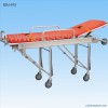 The automatic loading stretcher can be loaded and unloaded only by one person from ambulance vehicle. The mechanical folding legs are controlled by the handles on both sides. Legs can be folded under the stretcher after loading on the vehicle. The stretcher can be locked up after loading on aboard through the chute.