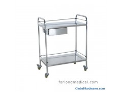 Specifications: 61× 45× 85cm(piece)Structure and configuration: All stainless steel structure with silent wheels, doubel deck with a drawerCan be produced according to clients' different requirements, OEM is available. (at least 50PCS)
