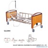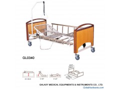 THIS IS THREE FUNCTIOANL ELECTRIC BED.1. Electric bed with three folds steel net bed surface. 2. Solid wood bed head and foot board. 3. Foldable aluminium alloy bed side rails. 4. Powder coated steel bed frame. 5. Rubber castors with brake. 6. Two motors electric elevator mechanical system.