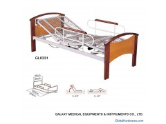 THIS IS TWO FUNCTIONAL ELECTRIC BED. 1. Adjustable three folds metal net bed surface. 2. Solid wood bed head and bed foot. 3. Detachable bed side rails. 4. Powder coated steel bed frames. 5. Two handle bars on the bed end...6. Rubber castors with brake. 7. Electric elevators mechanical system with no noise, has passed CE, UL authentications.