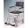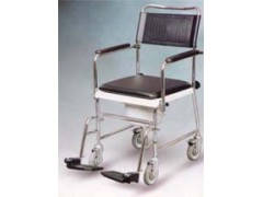 Tubular steel frame with chrome finishEasily removable back post with integral flip back armrestsBlack vinyl upholstery with black closed cell PU armrestsIncludes white plastic seat complete with bucket and lid(5 litre capacity)Quick release and height adjustable leg rests with plastic footplates. Model NO.: WC002 Company: Aokang Rehabilitation Equipment Ltd.