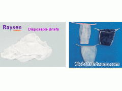 Raysen's briefs are made from soft White color non-woven polypropylene material. Elastic laced around. Sewn seams provide superior strength and comfortable fit. Can be of any design, size, color as per requirements 3036 Briefs, made with soft non-woven materials, with colored laces 3070 Briefs, nonwoven, all color, sizes for men and women