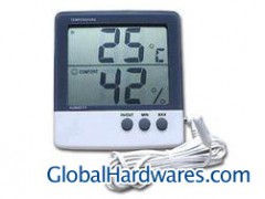 1. INDOOR: 0C~+50C(+14F~122F); OUTDOOR: 50C~+70C(-58F to +158F); Humidity: 15%~95%(RH)2. Accuracy: +/-1C(1.8F)at the temperature of 15C ~35C(59F~95F); +/-5% at the temperature of 15C ~35C(59F~95F) and the humidity of 40%~80%, +8% at the remaining range. 3. Resolution¡ RTemperature 1C(1 F); Humidity 1%. 4. In/out. 5. Unit Size: 108x100x22mm, Display size: 80x60mm6. Hygrometer: 0-39% display"dry" 40-65% dispaly"Comfort" 66-95% display"wet" Company: I-Cute Technology Ltd.