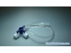 Extension tube with three way stopcock at one end and male luer lock connector at other end