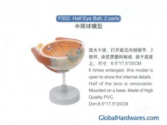 Product Nameï¼Half Eye Ball, 2 Parts Product Modelï¼F002 6 times enlarged. This model is open to show the internal details. Half of the lens is removable. Mounted on a base. made of highquality PVC. Dim: 8. 5*17. 5*20CM Model NO.: F002 Company: Ningbo Yong Jing Science And Educationequipments Co., Lld.