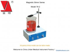 Model 78-2 Magnetic Stirrer SeriesMain Parameters: 1. Power Supply: 220V± 10% 50Hz± 2%. 2. Rotary Speed: 0~2400r/min stepless. 3. Rotating Power: 25W. 4. Heating Power: ≤ 200W. 5. Range of Temperature Controlled: Room Temperature ~100 Celsius. 6. Timing: 0~120min. 7. Two-Way Rotation: Yes. Tips: All parameters can be customized. More Product Features Trademark: Jinyi Model NO.: 78-2 Standard: A grade Productivity: 50, 000 pcs/year Unit Price/Payment: FOB Shanghai Origin: China Packing: carton or wodden case Min. Order: 1 Transportation: according to customers' need Export Markets: North America, South America, Eastern Europe, Southeast Asia, Africa, Oceania, Mid East, Eastern Asia, Western Europe Company: Jintan Medical Instrument Factory