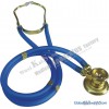 Ks-410A Sprague Rappaport Stethoscope(gold edition)Size of chest piece cover of KS-410 stethoscope: D1(adult) 45.5MM, D2(children) 30.5MM; height of chest piece: H 36MM; length of ear piece plus rubber tube: L 690MM.MEAS: 69X27.2X42.2cmQuantity: 50PCS/CTNN/G Weight: 16/18KGSPRODUCT DESCRIPTIONWith a special round body design, this product is intended to be used in identifying high and low heart tones as well as cardiovascular sounds.Made from imported PVC with high durability and resistance to ageing, the conducting tube features a two-channel design to achieve better conducting performance, enhanced volume and balanced auscultation between two ears.Each chest piece is equipped with three sound-collecting bells of large, medium and small sizes, which are suitable for auscultation of infants, children and adults as well as fetal heart sound, breath sound, and high and low heart sounds respectively, based on the area of auscultation and range of frequencies to achieve an optimal sensitivity of frequency response.Produced from 62 copper with poisonous decorative chrome plating with exceptional surface finish and high durability, the ear piece is designed to be automatically adjustable according to the user/s facial form and angle of auricles to achieve an optimal performance of wearing.Manufactured from highly flexible PVC synthetic material, the earphone can perfectly fit the auricle with no sound leakage and feels good in long time use. Moreover, it can be easily disassembled and cleaned to avoiding infection of doctors' ears. Acoustically designed for exceptional sound conduction, this set of stethoscope features up-to-date profile, high portability and a wide range of colors. Suitable for the doctor in charge, professional nurse and medical researcher. The stethoscope is guaranteed for 2 years in use normally cases. Trademark: kaishun Model NO.: KS-410A Packing: colorful box Company: Wuxi Kaishun Medical Appliance Factory