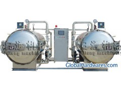 Heating by the steam to proceed double kettles parallel connection disinfection, can preheat the water in the pot to the required temperature, another pot filled with the goods and closed the door, hot water go into the pot and proceed disinfection, can proceed a cross-disinfection, thereby saving time and energy, increase the efficiency 1 time than the ordinary sterilizing kettle.