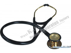 KS-500, 500B stainless steel Cardiology stethoscope (with two-sided diaphragm)Size of chest piece cover: D1(adult) 47MM, D2(children) 38MM; Height of chest piece: H 31MM; Length of ear piece plus rubber tube: L 650MM. MEAS: 77.7X40X28cmQuantity: 20PCS/CTNN/G Weight: 11/13KGSPRODUCT DESCRIPTIONPlated with gold, Chest piece and ear piece of KS-500B stethoscope is beautiful and dignified. It is made of poisonous stainless steel tube with perfect surface and high durability. Manufactured by imported, fully automatic CNC lathe and Japanese tooling, the chest piece features delicate texture, highly stereo profile, and high consistency. The cover of the chest piece features a high quality PVC non-chill sleeve which feels warm when contacting with human skin at a low temperature. It is available in a variety of colors. A type conducting tube is manufactured in a single dip molding process with imported PVC, which is resistant to high and low temperature and ageing, and a bi-lumen design (each tube is divided into two conducting hole directly connected with the ear pieces) in order to obtain better conducting performance and balanced auscultation between two ears. Ear piece is designed to be automatically adjustable according to the user's facial form and angle of auricles to achieve an optimal performance of wearing. Manufactured from highly flexible PVC synthetic material, the earphone can perfectly fit the auricle with no sound leakage and feels good in long time use. Moreover, it can be easily disassembled and cleaned to avoiding infection of doctor's ears. Trademark: kaishun Model NO.: KS-500B Packing: Colorful Box With Two Covers And Sponge Base Company: Wuxi Kaishun Medical Appliance Factory