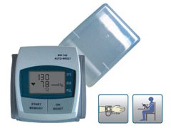 Wrist blood pressure monitorMeasuring range: 0-300mmHg/0-40.0kPaMeasuring accuracy: +/-0.4kPa/+/-3mmHgMin. Scale: 0.1kPa/1mmHgMemory: 60group memoriesAuto shut-off: 30sec after idle. Battery: AAAx2, alkaline batteriesBattery life: Approx. 2, alkaline batteriesSize: 65X78X28mmN. W: 128g