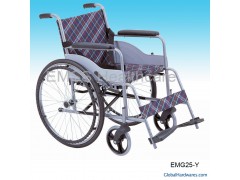 This wheelchair is supplied with fixed armrest, fixed footrest, high strength plastic handle rim and caster-fork.