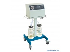 AM-23C. III, Am-23C. V electrical suction device is a new style suction device for medical use. It can meet most of the negative pressure requirements in operating rooms, wards and other departments in hospitals. It is used for taking out pus, blood, sputum and other thick liquid in human body. The machine adopts oil-free lubrication vacuum pump avoiding the pollution of oil mist, and the pump requires no daily maintenance and servicing. The liquid vessel placed directly on the mobile setup makes it easy to observe the liquid level in the vessel. Overflow protection device can prevent the liquid from flowing into the pump. Hand-operated switch and footstep-operated switch are connected in parallel for option. The complete machine works reliably, produces low level of noise. It is long in service life and reliable and safe in use (23C. V). Technical Specifications: Mains: AC 220V ± 10% 50HzNegative pressure value: ≥ 0.09MpaAir pumping efficiency: ≥ 25L/minPump structure: Imported film type pumpLiquid vessel: 2500ml x 2 Adjustment range of negative pressure: 0.013 - 0.09MpaNoise level: ≤ 55dBWorking mode: Intermittent loading, continuous operation