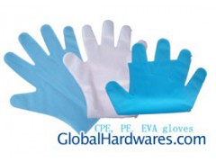 PE gloves: Type: LDPE, HDPEColor: Blue, clear Size: S, M, L, XLPackage: 1000pairs/box 100boxes/cartonSpecification: 1: Length(mm) Min. 240 2: Width(mm) 3: Small: 85+/-3 4: Medium: 95+/-3 5: Large: 105+/-3 6: Extra large: 115+/-3 7: Thickness-single wall (mm)8: Fingers: 0.12+/-0.02 9: Palm: 0.10+/-0.02 10: Cuff: 0.07+/-0.0211: Tensile strength (MPa): Min10 12: Elongation at break (%): Min300 More Product Features Trademark: CMC Model NO.: PE-A Standard: ASTM D5250 and EN 455 standards Productivity: 10000000PAIRS/MONTH Unit Price/Payment: $16/box Company: Shanghai Hua Yaun Industry Co., Ltd.