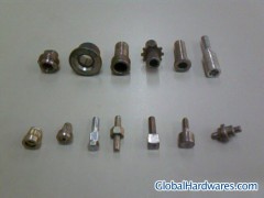 Various odd-shaped screws, including chrome-molybdenum-alloy-steel screws (strength-rated to JIS 9T-14T) and stainless-steel screws (SUS302/SUS304).