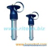 Quick release pin,ball lock pin,detent pin,self lock pin,positive lock pin is used for all kinds of quick dismantling & fitting while needing to repeat positioning accuracy.Features: 1. It can be Auto-defense and make the ball of the pin head be retractable by pressing the button of the handle , at this time you can let the quick release pin be passed through the pin hole quickly ;2. When you release the button, the ball will pop-up , quick release pin will can't be pull-out;3. High precision, The tolerance of diameter and grip length are very strict;4. The coverage of application is wide, according to the environment you can choose to use high-strength alloy steel and stainless steel material;5. According to the space conditions of handle you can choose L-handle, T-handle, Button handle, Marine handle or Ring-handle and so on.Our quick release pin,ball lock pin,detent pin,self lock pin,positive lock pin can be provided various forms of handle, and all kinds of specifications of metric and inch . The leadtime is very short. We always keep a large stock of, and also we have a technology department, the ministry of research design, a fully furnished equipment. we are standby to provide quality services to our clients.Brand Name: RITEONCountry of Origin: ChinaPrice: USD $ 6.00/pcPrice Terms: EXWPayment Terms: T/T