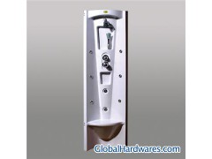 1. Adjustable top shower 2. Stainless steel soft pipe.Hand shower. 3. Faucet with ceramic valve core, hot and cold controller 4. Mixer,multi-directional water out 5. 6 hydraulic acupuncture massage spray heads. Two woven pipes in stainless steel.