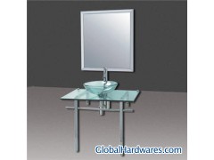 1、Faucet is made of seamless brass tube and secured by threaded sleeve. 2、Melted coloring for mirror 3、1 basin faucet and 1 drainer set 4、Countertop is made using glass processing equipment, and is toughened And sandblasted for higher resistance against impact and weight. 5、Under-counter basin, stainless steel 6、4 plastic feet and 2 glass countertop clamps