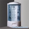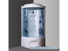 1. ABS base tray, back and resin coat. 2. 5mm glass 3. Chrome-plated brass towel rack (double bar) 4. Chrome-plated brass faucet, 4 gears 5. Prick massage nozzle 6. Round and white plastic handle 7. Tread drainer (incl. spill and discharge outlet) 8. Hoist shower head (chrome-plated, 3 gears with 5 functions, 1.5-m brass hose)