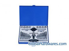 28PCS METRIC TAP&DIE SET Includes: 8 Tapers: 3×0.5, 3.5×0.6, 4×0.7, 5×0.8, 6×1.0,8×1.25, 10×1.5, 12×1.75 8 Plug Taps: 3×0.5, 3.5×0.6, 4×0.7, 5×0.8, 6×1.0, 8×1.25, 10×1.5, 12×1.75 8 Dies: 3×0.5, 3.5×0.6, 4×0.7, 5×0.8, 6×1.0, 8×1.25, 10×1.5, 12×1.75 1Tap wrench:M4-M12 1 Die wrench:25mm O/D 1 T-Type Tap Wrench:M3-M6 1 Screw Pitch Gauge