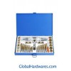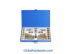 40 pcs inch tap and die set Includes: 10 UNC Taps: 4-40, 6-32, 8-32, 10-24, 12-24, 1/4, 5/16, 3/8, 7/16, 1/2 6 UNF Taps: 10-32, 1/4, 5/16, 3/8, 7/16, 1/2 10 UNC Dies: 4-40, 6-32, 8-32, 10-24, 12-24, 1/4, 5/16, 3/8, 7/16, 1/2 6 UNF Dies: 10-32, 1/4, 5/16, 3/8, 7/16, 1/2 1 NPT Tap:1/8-27 1NPT Die:1/8-27 1Tap wrench:1/16-1/2" 1 T-Type Tap wrench:1/16-1/4" 1 Die wrench:1" O/D 1 Screwdriver 1 Screw Pitch Gauge