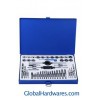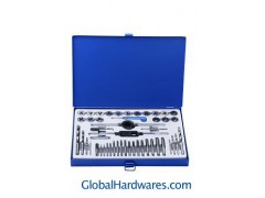 50 pcs Tap, Die, Screw Extractor set Includes: 20Taps & 20 Dies : 3×0.5, 4×0.7, 5×0.8, 6×1.0, 8×1.25, 6-32, 8-32, 10-32, 10-24, 12-24, 1/4-20,1/4-28, 5/16-18, 5/16-24, 3/8-16, 3/8-24, 7/16-14, 7/16-20, 1/2-13, 1/2-20 5 Screw E×tractor: No.1, No.2, No.3, No.4, No.5 1 Tap wrench:M3-M12 (1/16-1/2") 1 T-Type Tap wrench:M3-M6(1/16-1/4") 1 Die wrench:25mm(1") O/D 1 Metric Screwdriver Pitch Gauge 1Inch Screw Pitch Gauge