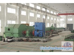 LG450-H cold rolling millTechnical parameter of product1.outer diameter of rough tube:250-480mm2.wall thickness of rough tube:10-35mm3.length of rough tube:less than 10000mm4.outer diameter of finished products:219-450mm5.wall thickness of finished products:6-28mmTechnical parameter of machine1.diameter of roller:1128/928mm2.round trip length of operating frame:1208mm3.round trip frequency of operating frame:20-50times/minute4.feeding amount:2-12mm(single feeding)5.swing angle of rough tube:41-52 degree(double turning)6.material loading method:Side loading7.continuous rolling:No8.rolling lines:single9.Power of main motor:DC motor 950KW