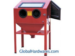 ITEM NO: DJ-SBC220 Blast rust, corrosion and paint on large parts in a enclosed cabinet to keep dust off the floor and out of the air Heavy steel construction, single door on a side Transparent glass viewing window 40-80PSI 15-25CFM