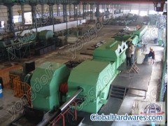 | LG325-H cold rolling millTechnical parameter of product1.outer diameter of rough tube:195-365mm2.wall thickness of rough tube:6-28mm3.length of rough tube:less than 10000mm4.outer diameter of finished products:168-325mm5.wall thickness of finished products:3-25mmTechnical parameter of machine1.diameter of roller:680/838 mm2.round trip length of operating frame:1155mm3.round trip frequency of operating frame:20-50times/minute4.feeding amount:2-12mm(single feeding)5.swing angle of rough tube:41-52 degree (double turning)6.material loading method:Side loading7.continuous rolling:No8.rolling lines:single9.Power of main motor:DC motor 670KW |