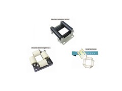 This dampening devices have an improved design and are recommended for maintaining smooth operation of compensating cables for speeds of up to 700 feet/min 3.56m/sec. This device uses free-tuming nylon rollers to contain and dampen any oscillation or cable sway that may be generated by cable motion at higher speeds.