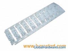 Various strips run in our stamping progressive die showing the stamping sequence.Material: SECC (galvanized steel);Die steel: SKD11 or D2;We make stamping die especially progressive die for sheet metal parts Such as small auto parts, computer cases, cover or accessories of duplicater, printer, auto sound, VCD, DVD, other electronic appliance and keyboard membrane cutting dies. Press capabilities up to 250 tons. ISO9001: 2008 certificated.