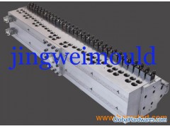 T die adopt coat hanger flow channel,90 degree choke bar of lower lipUpper lip for fine adjustmentLower lip can be adjusted thicknessCan produce 0.15-3mm sheet Suitable for producing pp pa pe pet ps pc abs eva sheet .