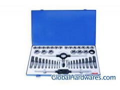 Quickly restores or creates internal or external threads in a wide range of sizes Heavy duty alloy steel for durability Model No. M045-1 Includes: 20 Taps: 6×0.75, 6×1.0, 8×1.0, 8×1.25, 10×1.25, 10×1.5, 12×1.5, 12×1.75, 14×1.5, 14×2.0, 16×1.5,16×2.0, 18×1.5, 18×2.5, 20×1.5, 20×2.5, 22×1.5, 22×2.5, 24×1.5, 24×3.0 20 Dies: 6×0.75, 6×1.0, 8×1.0, 8×1.25, 10×1.25, 10×1.5, 12×1.5, 12×1.75, 14×1.5, 14×2.0, 16×1.5, 16×2.0, 18×1.5, 18×2.5, 20×1.5, 20×2.5, 22×1.5, 22×2.5, 24×1.5, 24×3.0 1 Tap wrench:M8-M25 1 T-Type Tap wrench:M3-M6 1 Die wrench:50mm O/D 1 Adapters for Die Wrench:38mm O/D 1 Screwdriver